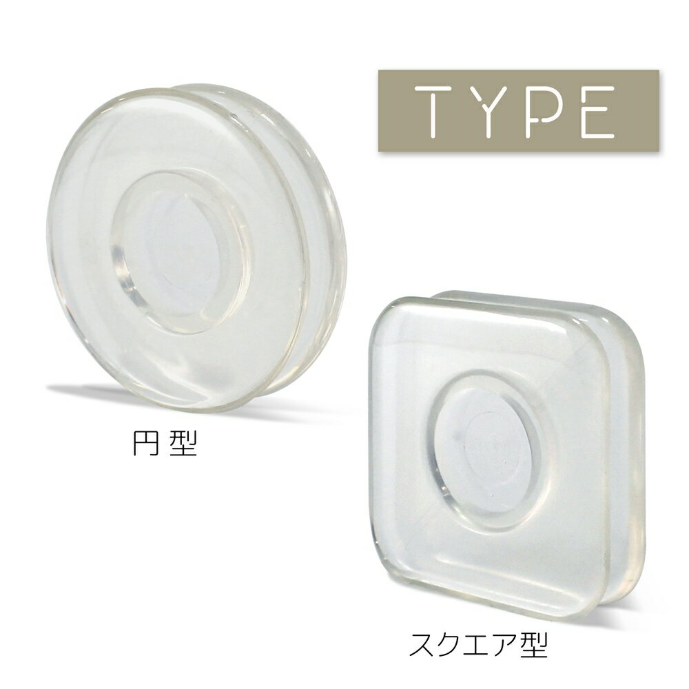 色んな物がピタッ!とくっつく万能ジェルパッド【カラー】クリア【タイプ】円型 / スクエア型【サイズ】円型 直径 約50mm / 厚み 約11mmスクエア型 約50mm×約50mm / 厚み 約13mm 【付属品】携帯用保護シート各2枚粘着面に貼り付けて携帯の際などにお使いいただけます。