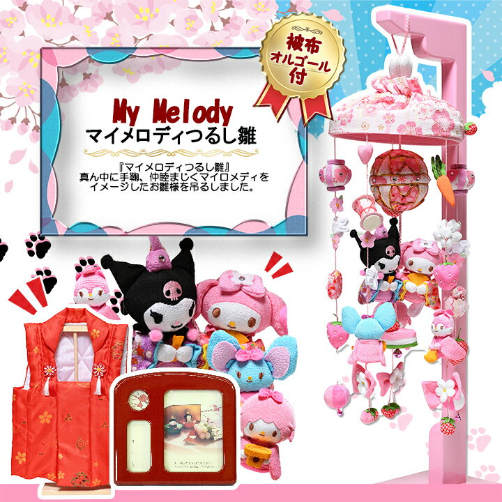 【サンリオつるし雛】傘付マイメロディつるし雛「被布・メモリアルオルゴール付き」:スタンド付【つるし雛】